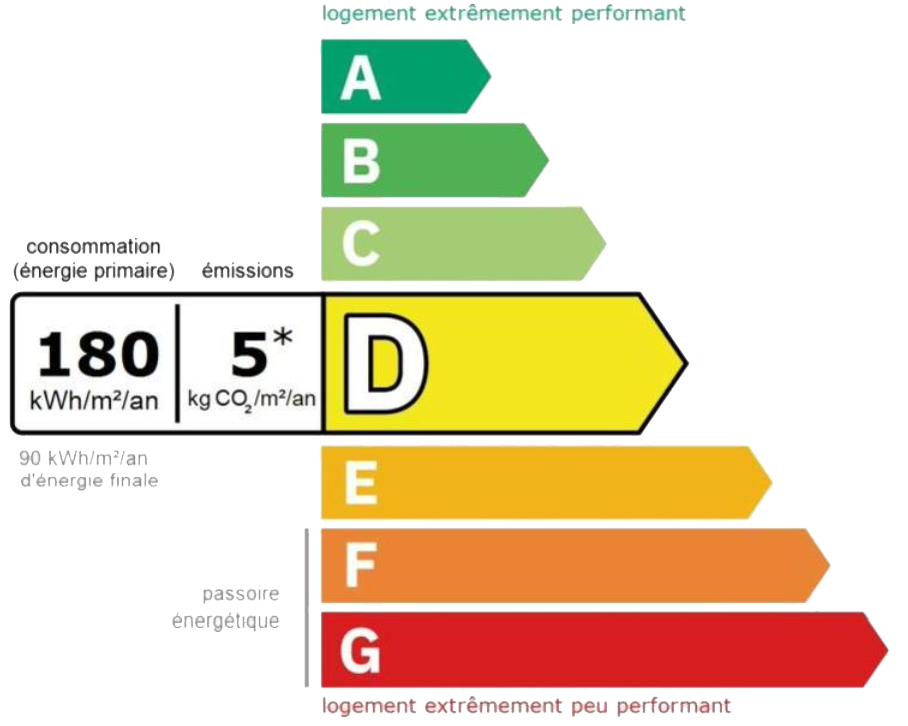 Les coûts sont estimés en fonction des caractéristiques du logement et pour une utilisation standard sur 5 usages (chauffage, eau chaude sanitaire, climatisation, éclairage, auxiliaires).