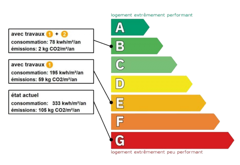 Evolution de la performance après travaux (selon diagnostics réalisés le 08/09/2025)
