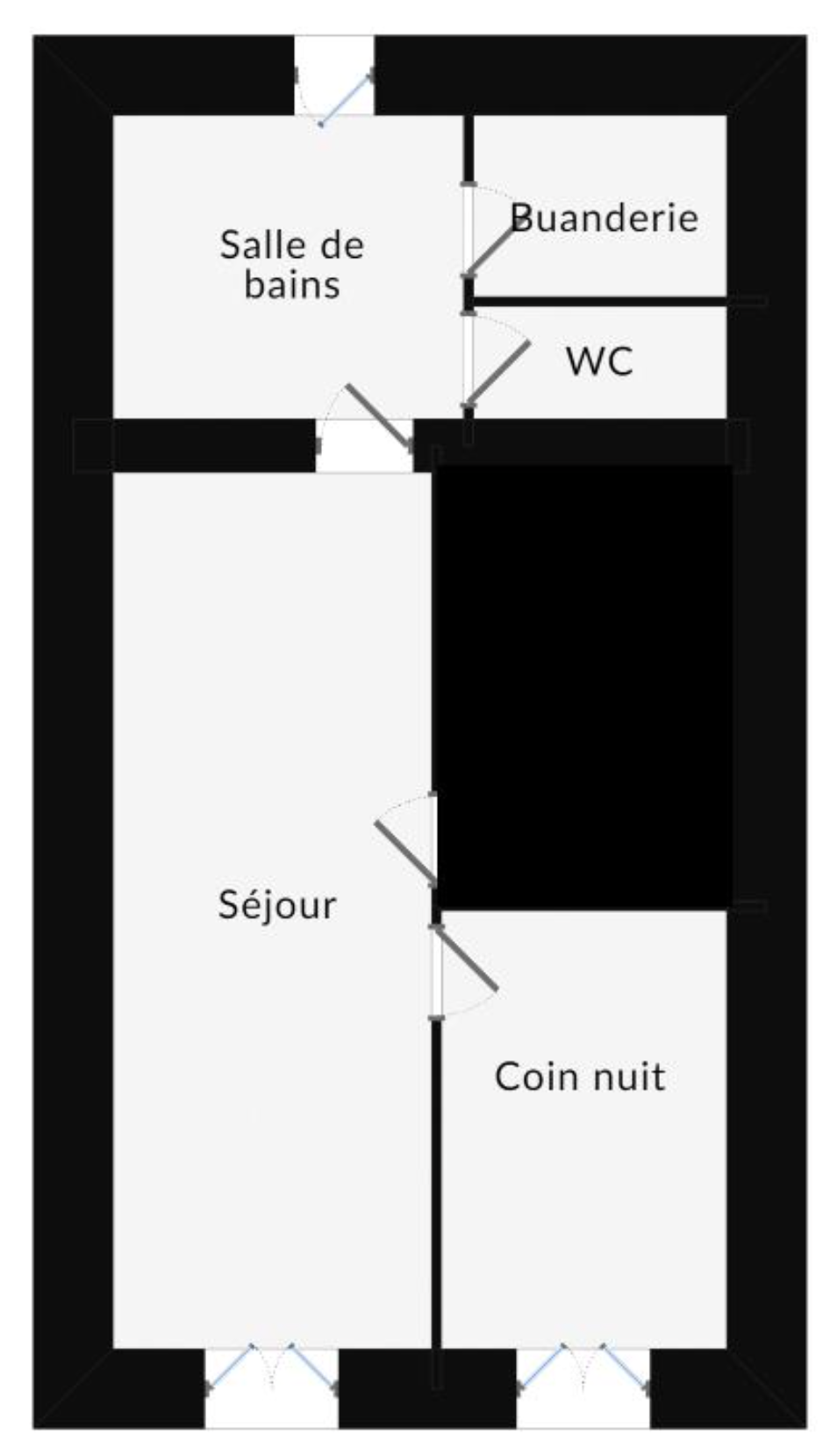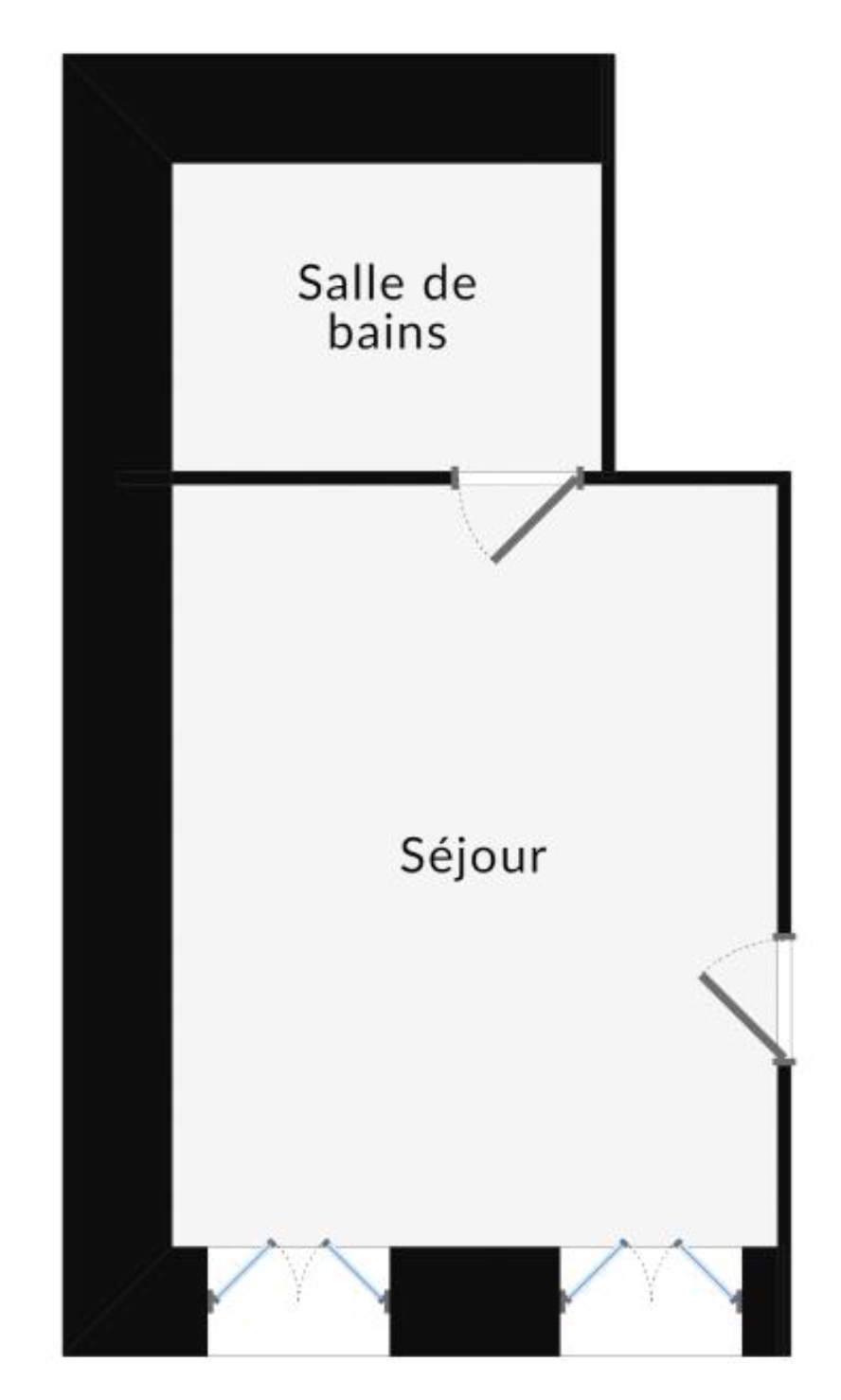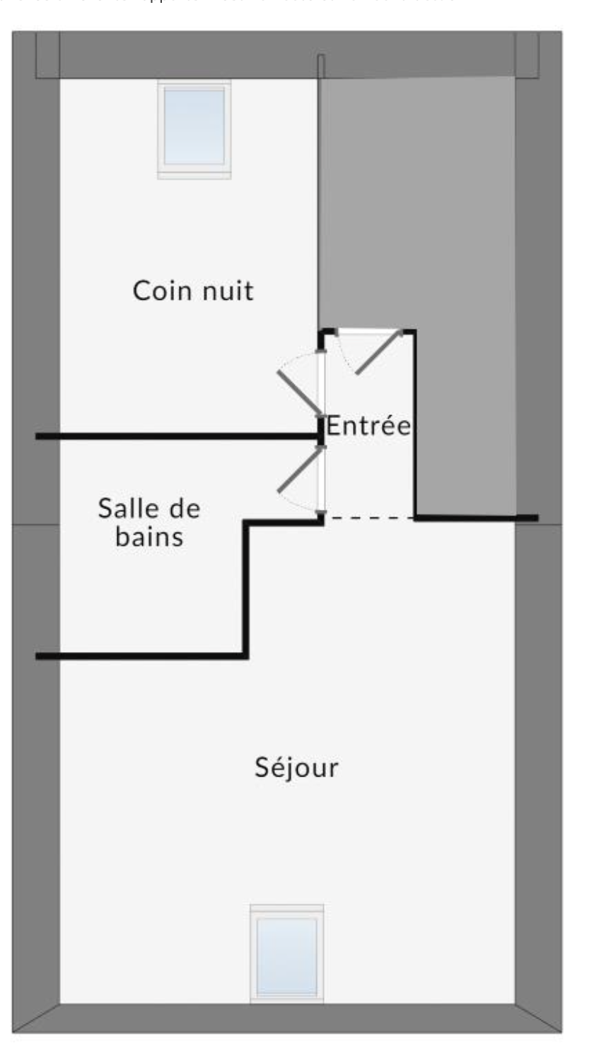 – studio – pièce de vie avec kitchenette – salle de bain avec wc