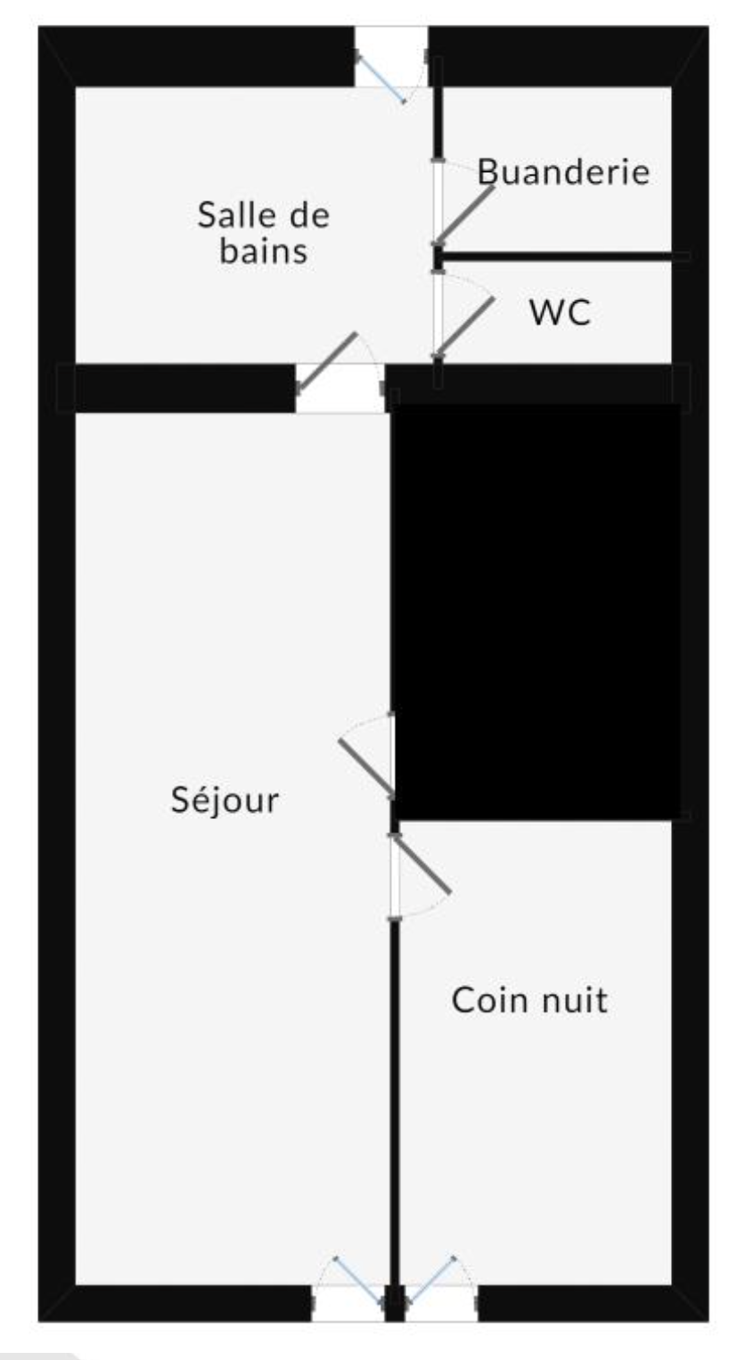 – T1 bis – pièce de vie avec kitchenette – coin nuit – salle de bain – wc – buanderie