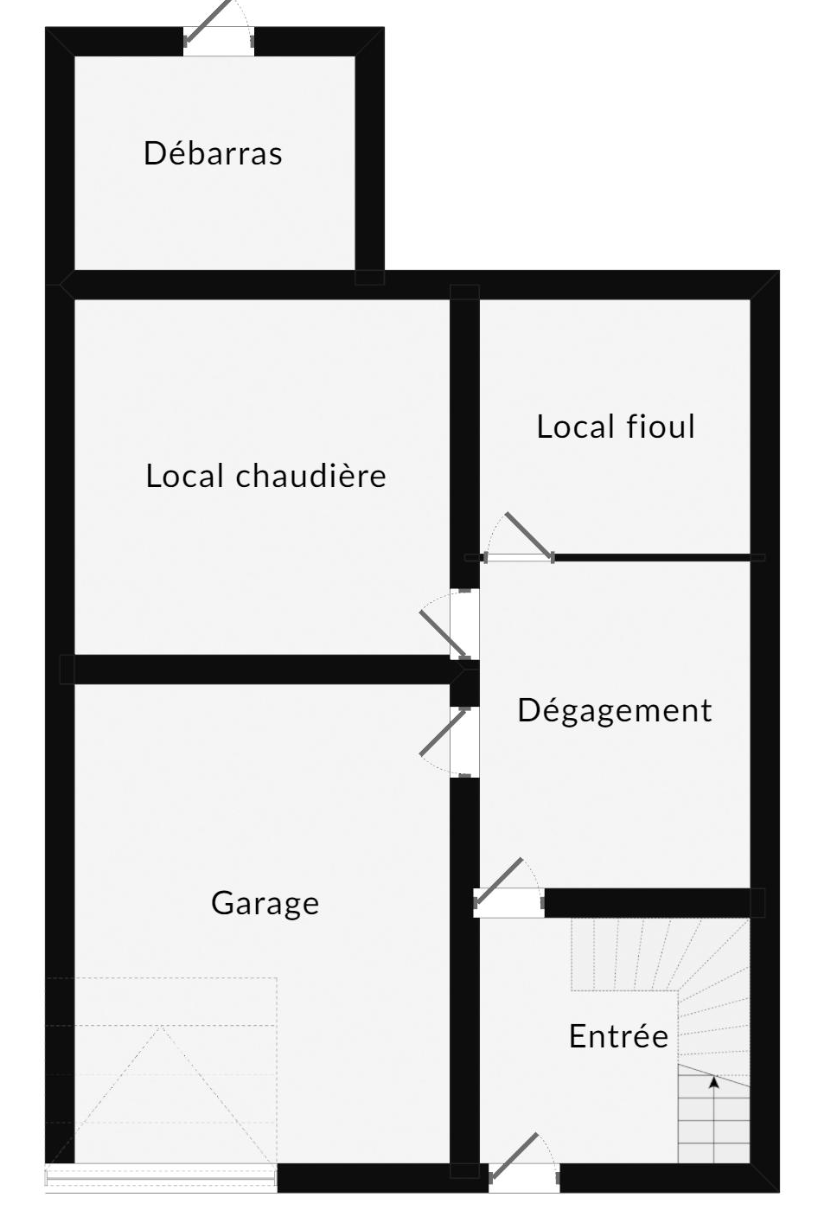– entrée – dégagement – local fioul – garage – local chaudière – débarras