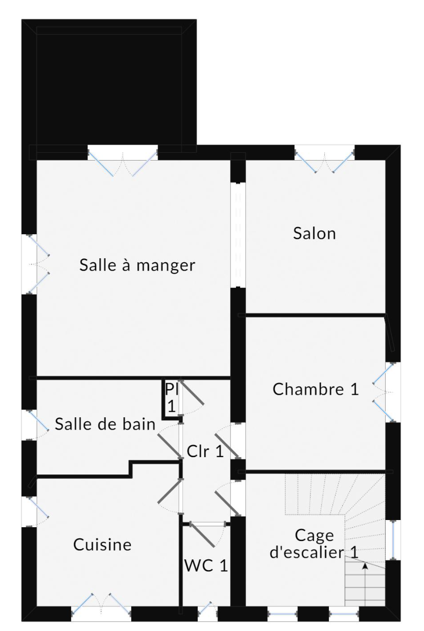 – cuisine – pièce de vie avec accès à l’extérieur – chambre – salle de bain avec wc (sanibroyeur) – wc indépendant